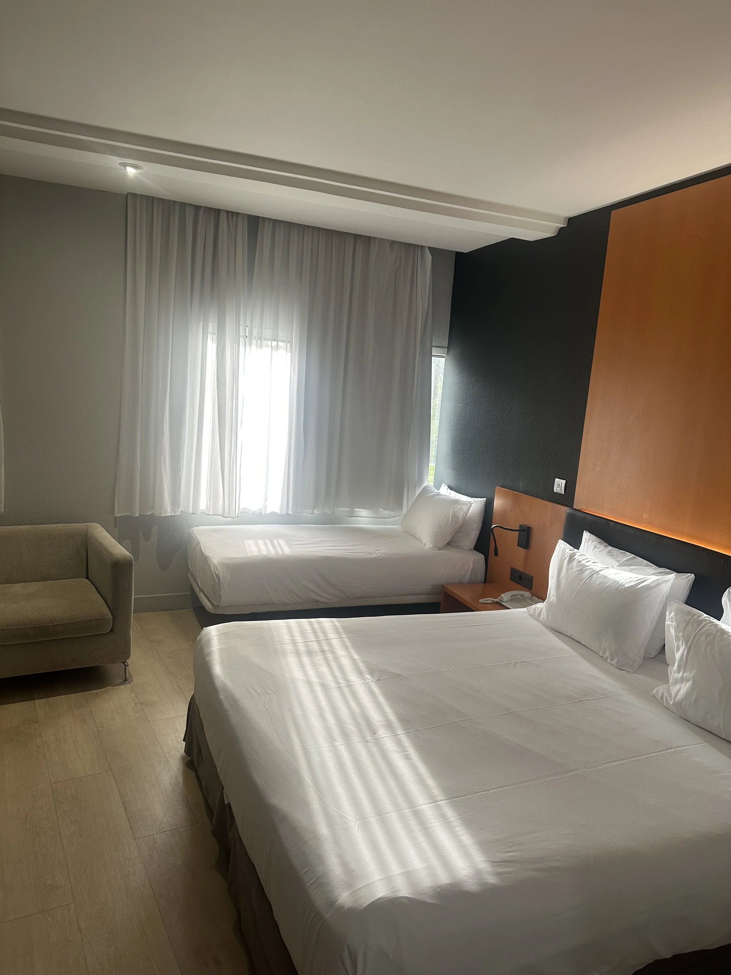 A serene and welcoming space, ideal for resting and disconnecting after exploring the city. The natural light filling the room and its peaceful ambience invite total relaxation, creating a sense of comfort and calm.